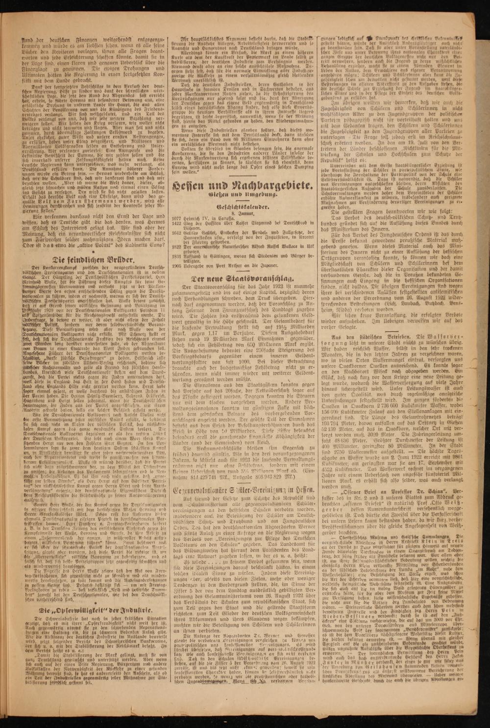 Der Staatsvoranschlag für das Jahr 1923 ist nunmehr zusammengestellt und bis auf einige Kapitel, bezüglich deren noch Verhandlungen schweben, dem Druck übergeben. Hier nach darf angenommen werden, daß der Voranschlag zu An— fang Februar dem Finanzausschuß des Landtags zugehen wird. Die Zahlen sind entsprechend dene gesunkenen Geld— wert gewaltig in die Höhe geschnellt. Der Gesamtbedarf für die laufende Verwaltung stellt sich auf 19½ Milliarden Mark, gegen 1,17 im Vorjahre. Diesem Ausgabebedarf stehen rund 19 Milliarden Mark Einnahmen gegenüber, sodaß sich ein Fehlbetrag von 680 Millionen Mark ergibt. Die Ausgabesumme bedeutet eine 250fache Steigerung des