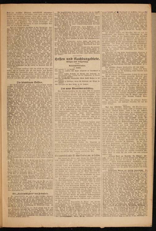 Die Rechnungsobschlüsse bleiben(im Gegensatz zu früher) dauernd günstig. Wie in den drei vorausgegangenen Jahren, so schließt auch für 1923 die laufende Verwaltungs- rechnung nicht nur ohne Fehlbetrag, sondern mit einem kleinen Ueberschuß von rund 5) Millionen Mark ab. Ein⸗ nahme 814 429 741 Mk., Ausgabe 808 943 829 Mk.) Gegeurevolntionäre S hüler⸗Vereinigung in Hessen.