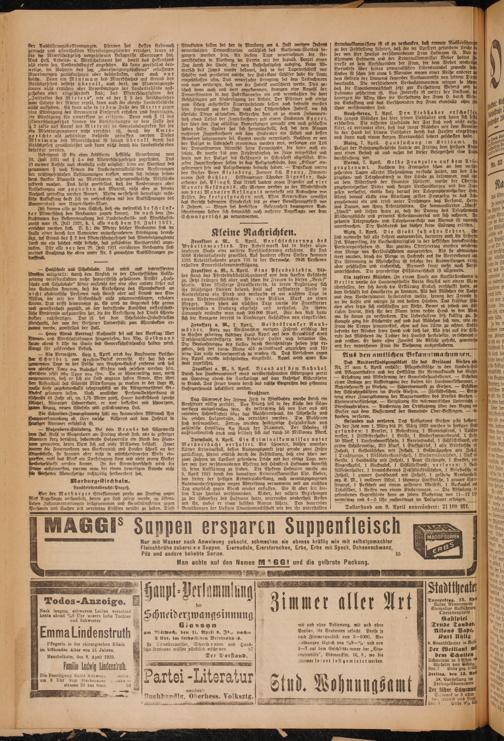 Giessen am duttwoch, den 11. April d. Js., nachm 2 or, im katholischen Vereinshaus.