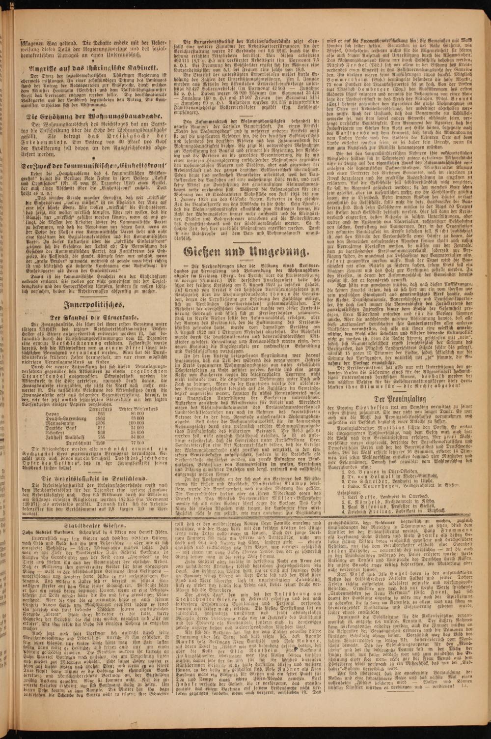 Die Verhandlungen über die 1 eines KNreisver⸗ bandes zur Verwaltung und Verwendung der Wohnungsbau- abgabe im Kreistag.(Vergl. den Bericht über die Kreistagssitzung in voriger Nummer.) Mit derselben Angelegenheit hatte sich schon ber frühere Kreistag am 3. August 1922 zu befassen gehabt. Auf Grund von Artikel 8 des hessischen Ausführungsgesetzes zum Reichsgesetz über die Wahnungsbauabgabe können die Gemein⸗ den, denen die Verpflichtung zur Erhebung der Zuschläge obliegt, sich zu Verbänden(Kreisverbänden) zusammenschließen. Die Mehrheit der oberhesssischen Gemeinden machte von dieser Zentrali⸗ sierung Gebrauch und schloß sich zu Kreisverbänden zusammen. Auch im Kreise Gießen sollte der Zusammenschluß erfolgen, aber der Antrag des Kreisantes, der die Zustimmung des Kreisaus⸗ schusses gefunden hatte, wurde vom damaligen Kreistag am 3. August 1922 mit 1 Stimmen Mehrheit abgelehnt. Die Mehrheit wurbe durch die deutschnatlonalen und bauernbündlerischen Mit⸗ glieder gebifdet. Verwaltung und Kreisausschuß waren einig, dem neuen Kreistag die Angelegenheit zur nochmgligen Behandlung und Beschlußsassung vorzulegen.