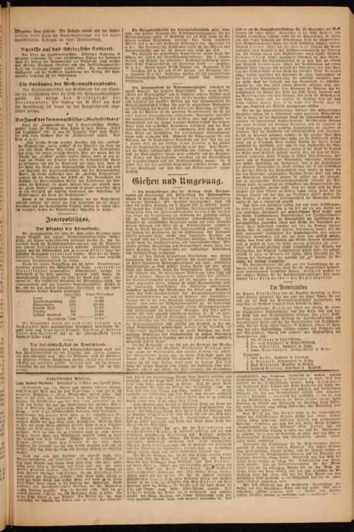 Der Provinzialtag der Propinz Oberhessen trat am Samstag vormittag zu seiner ersten Sitzung zusammen. Sie war nicht von langer Dauer. Es war auch nur die Wahl des Provinzial⸗Ausschusses vorzunehmen und außerdem ein Beschluß bezüglich einer Anleihe zu fassen.