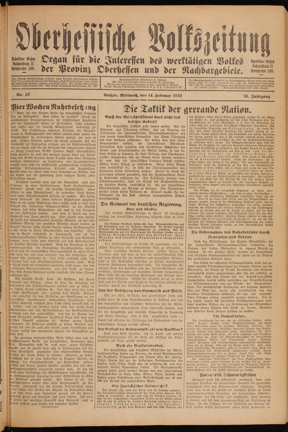 Gießen, Mittwoch, den 14. Februar 1923