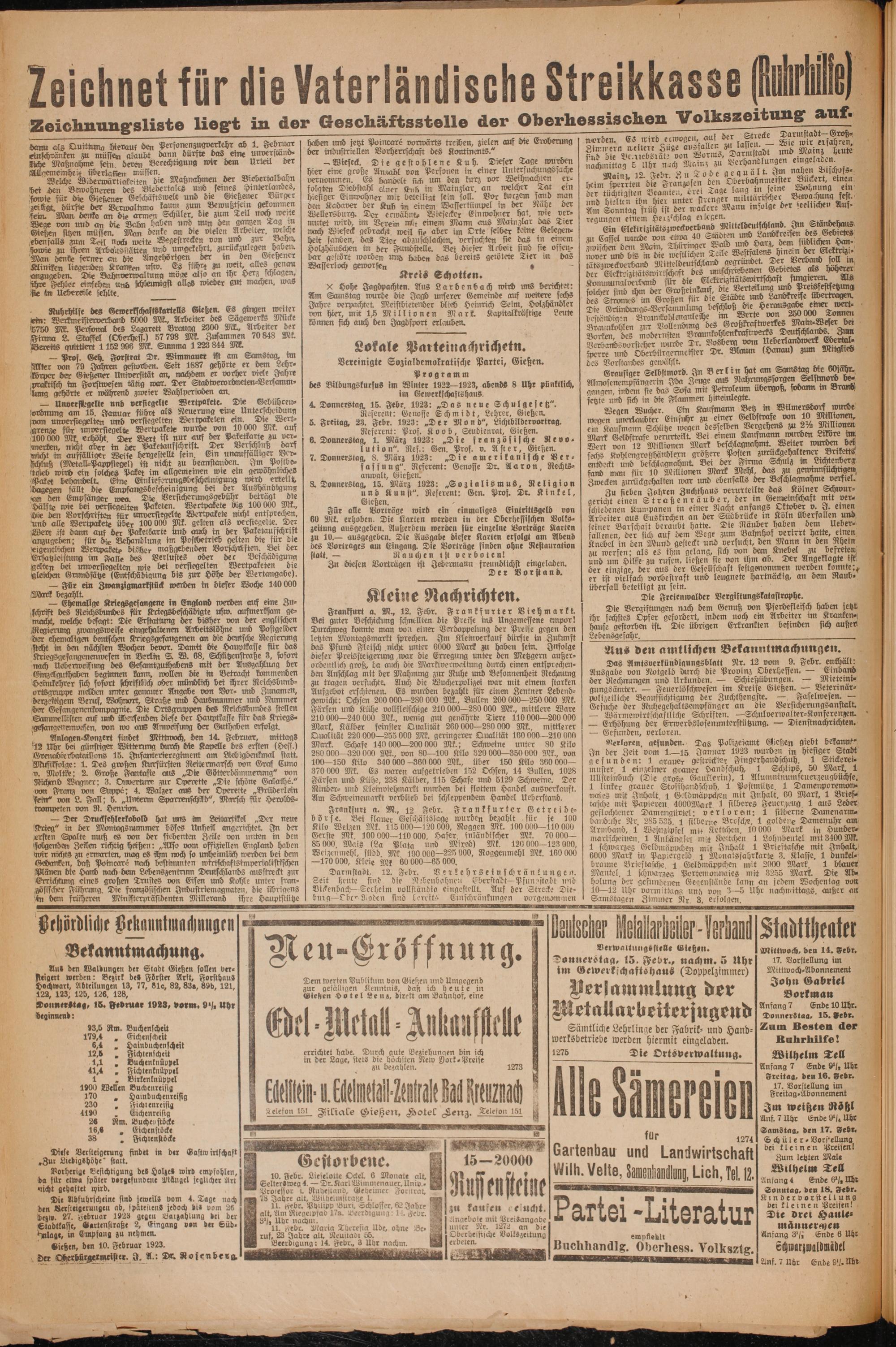8 Gießen, den 10. Februar 1923. Der Oherbüsgerneller, J. l. de Noten bevd