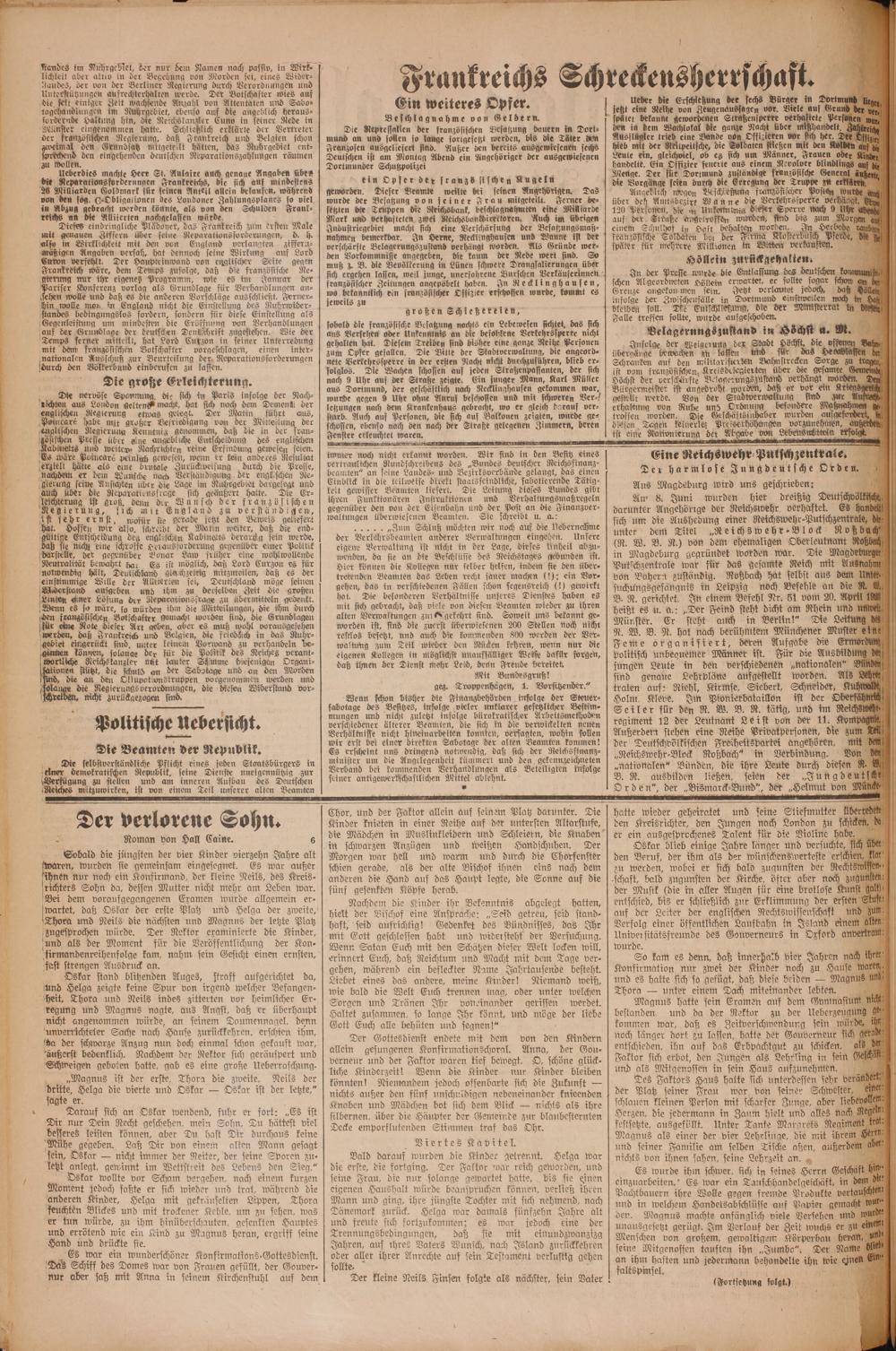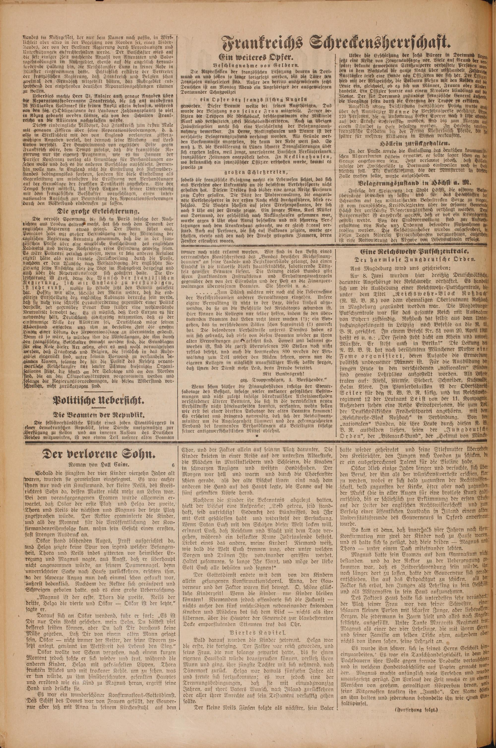 Walen stießen mit den Kolben Leute ein, gleichviel, ob es sich um Männer, Frauen od handelte. Ein Offizier feuerte aus einem Revolver blindlin Menge. Der für Dortmund zuständige französische Generg die Vorgänge seien durch die Erregung der Truppe du er Angeblich wegen Beschseßung französischer Poslen über den Amtsbezirk Wanne die Verkehrssperre ve 120 Personen, die in Unkenntmis dieser Sperre nach 9 auf 2955 92 895 ande reh W 10 bis 3 Mor einem Schulhof in Haft bel n worden. rbede