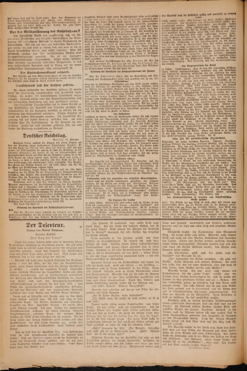 Nach weiteren Ausführungen des Abg. Rießer(D. V.), des Reichsjustizministers Dr. Heinze und des Abg. Hoffmann(S.) über die Not der Anwälte und ihrer Angestellten sowie Über Reformen im Reichspostamt wendet sich das Haus der