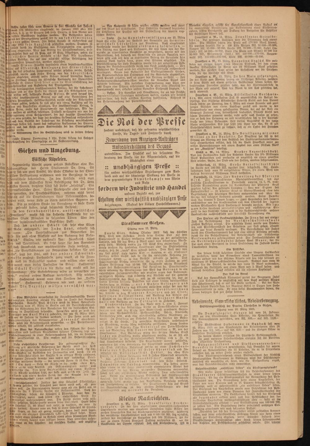 Arbeitsrecht, Gewerkscha tliches, Arbeiterbewegung. Schlichtungsausschuß der Provinz Oberhessen in Gießen. Sitzung vom 13. März 1923.