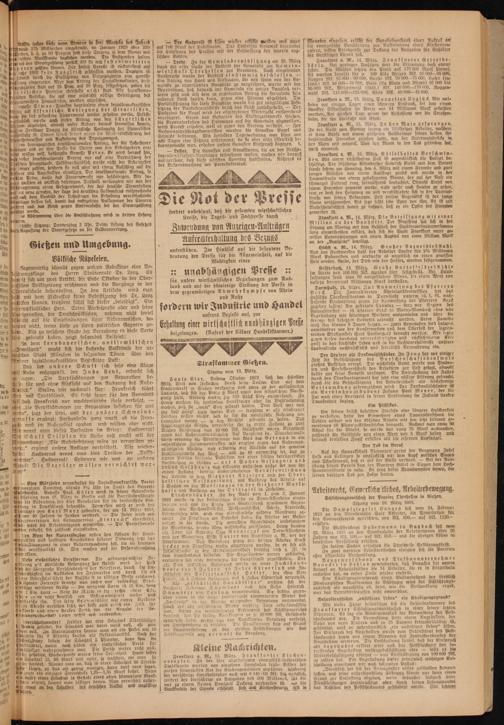 Die Dampfziegelei Hungen soll vom 24. Februar 1923 an den Stundenlohn ihrer Arbeiter, die Vorarbeiten für den Sommerbetrieb verrichten, von Mk. 800.— auf Mk. 1120.— erhöhen.