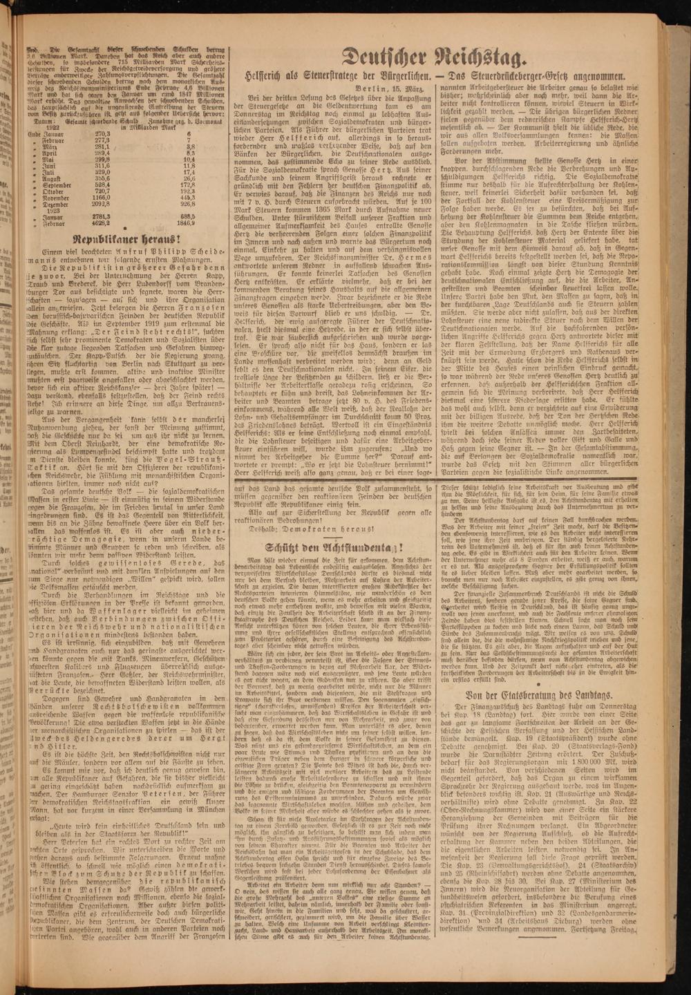 auf das Land das gesamte deutsche Volk zusammensteht, so müssen gegenüber den reaktionären Feinden der deutschen Republik alle Republikaner einig sein.