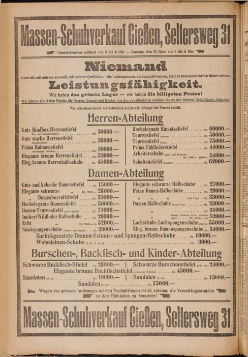 Elegante schwarze„ Ml 2850 28000.— Feine Damen-Halbschule W. 29000.— 1 Hochelegante Damenstiefel 11 50000.— Damen- Halbschuhe ee Damen-Tourenstiefel u ot.. M 71000.—%ͤõůR—sͤ Imitiert Wildleder-Halbschuhe. 20000—.„ Echt 5 M 2000. 5 52000— Lackschuhe„Lackspangenschuhe-, 55000.—