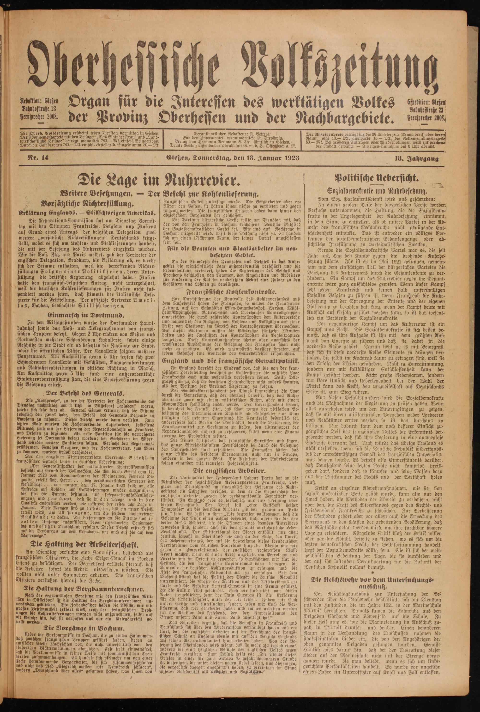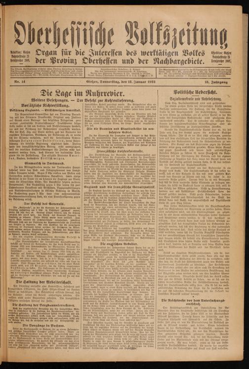 Politische Uebersicht. Sozialdemokratie und Ruhrbesetzung.