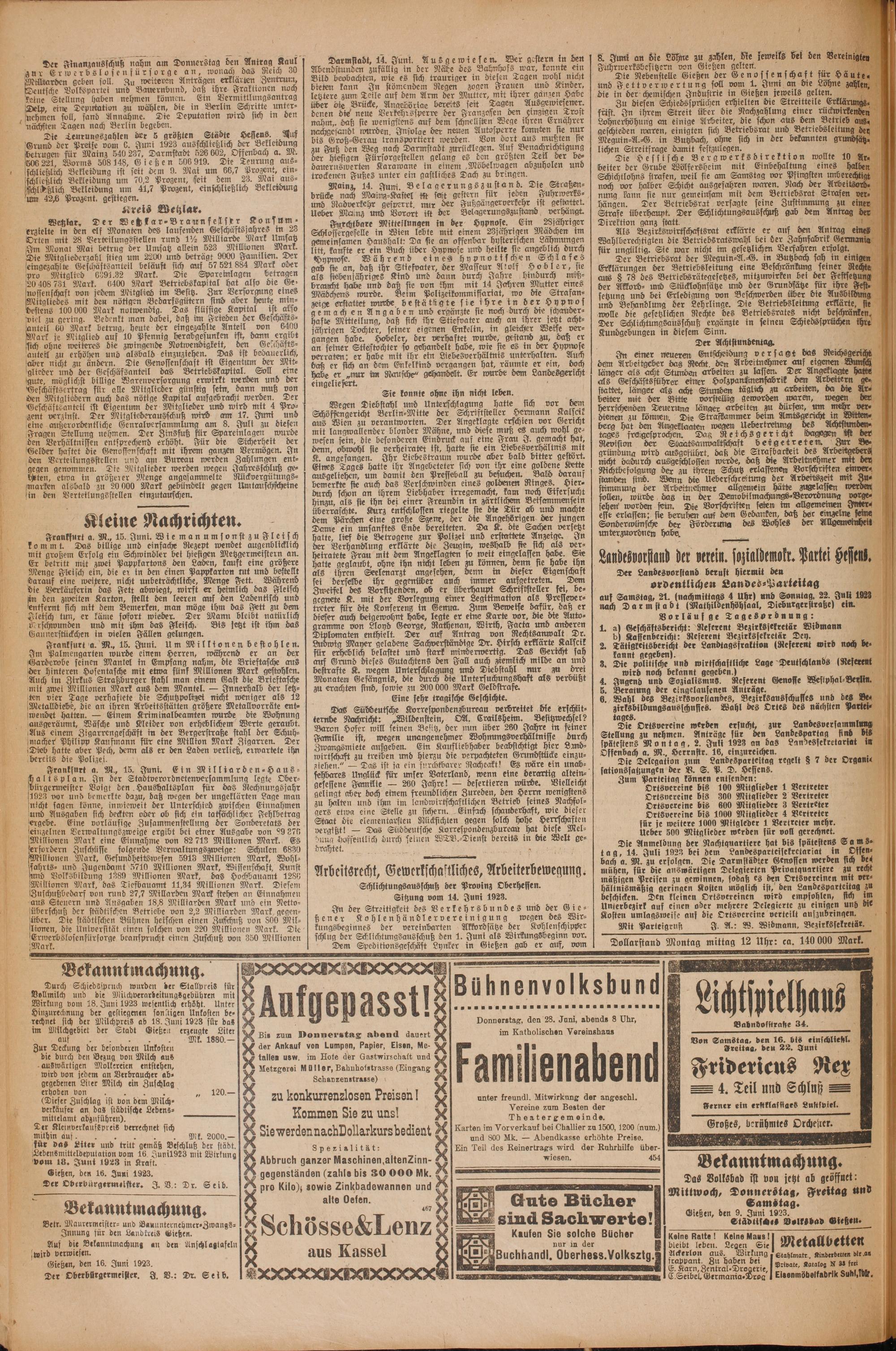 Auf die Belanntmachung an den Anschlagtafeln wird verwiesen. Gießen, den 16. Juni 1923.