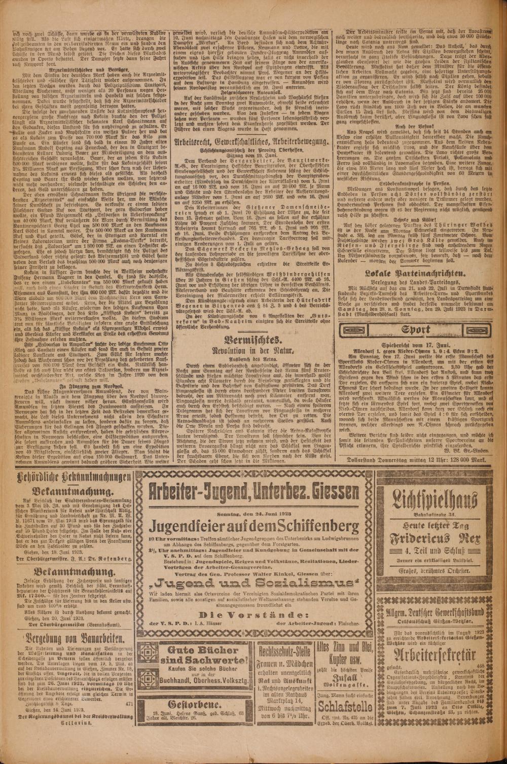 öffnung der Angebote erfolgt zum gleichen Term in in Gegenwart etwa erschienener Bewerber. Zuschlagsfrist 8 Tage. 47¹ Gießen, den 14 Juni 1923. Der Reglerungsbaurat bei der Kreisverwaltung Cellarius.
