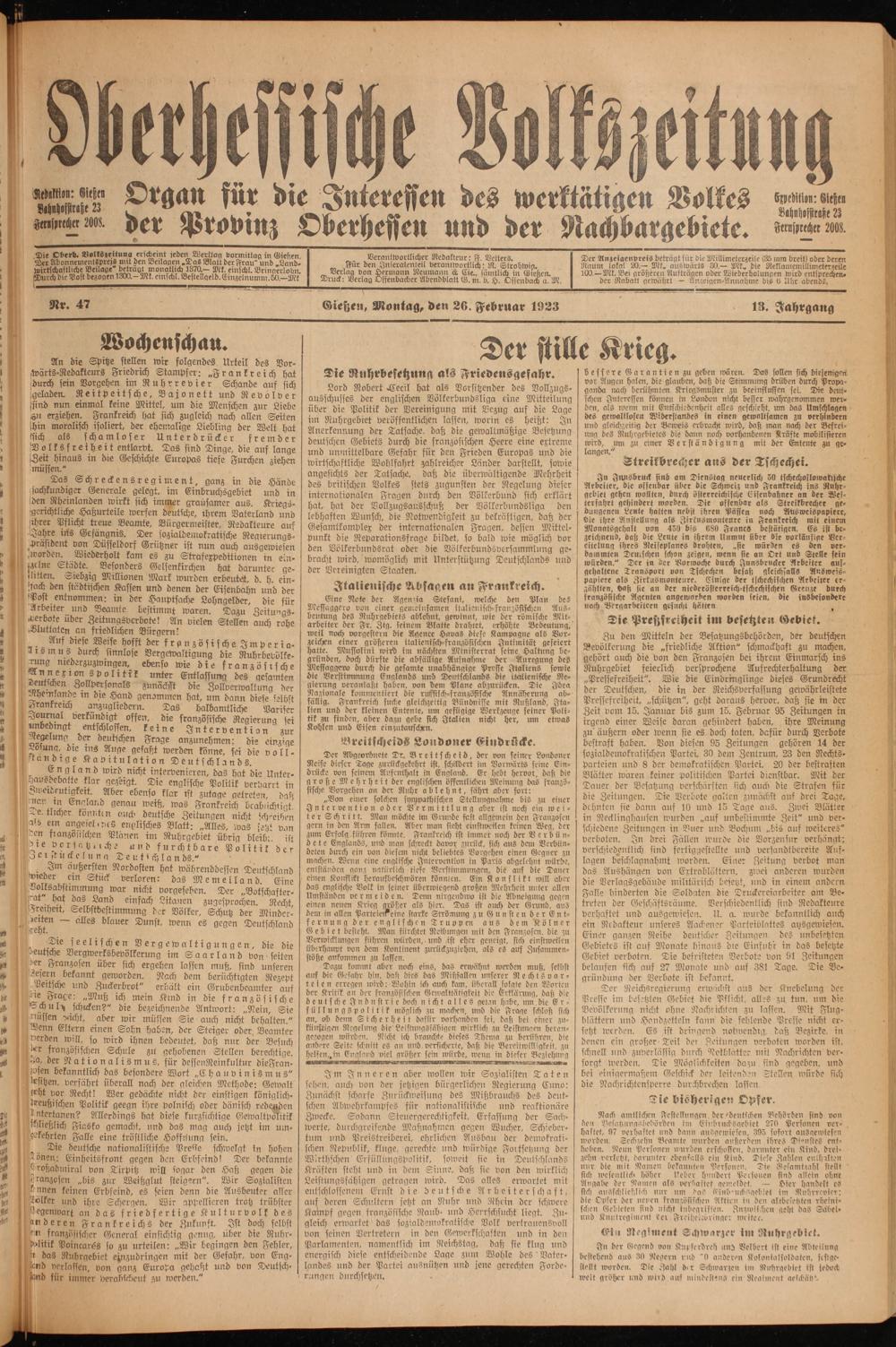 Gießen, Montag, den 26. Februar 1923