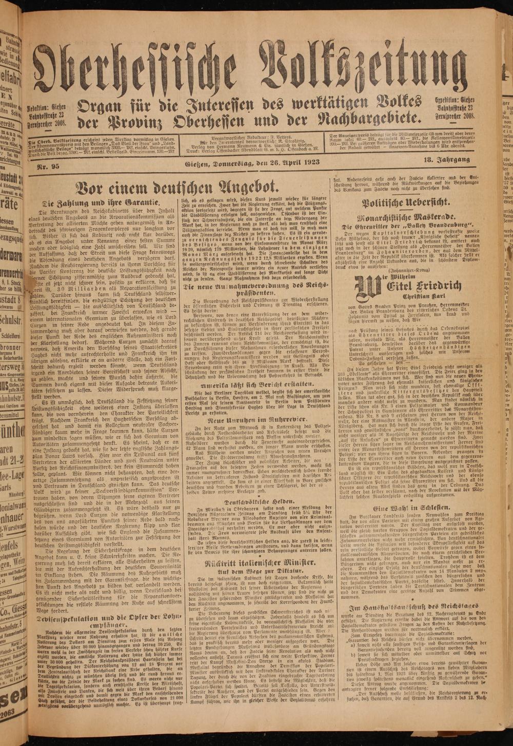 Die Oberb. Volksseitung erscheint jeden Werktag vormittag in Gießen. Verantwortlicher Redakteur: F. Vetters..