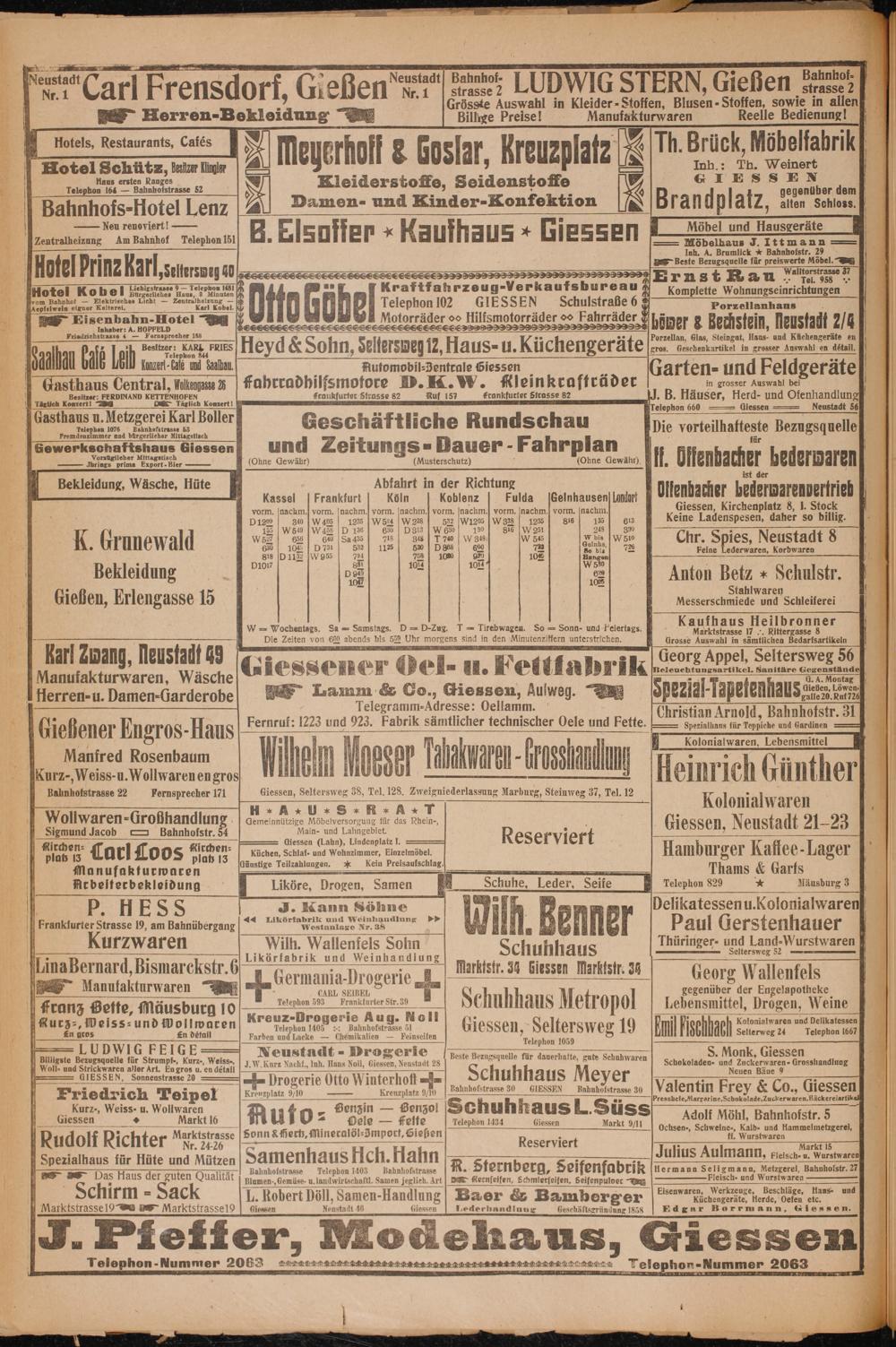 —— mrinzs prima Export- Bier(Ohne Gewähr)(Musterschutz)(Ohne Gewäht), Bekleidung, Wäsche, Hüte Abfahrt in der Richtung Kassel Frankfurt! Köln Koblenz Fulda Gelnhausen Lando vorm. nachm.] vorm. nachm. vorm. nachm. vorm. nachm. vorm. nachm.] vorm. nachm. 6 9145 340 W 405 1235 W 524 W228 522 W205 W328 1235 8¹6 13⁵ 6¹3³ K 6 10 W540 W428 D 136 650 D 313[W 650 13⁰ 816/ 251 2⁴⁸ 3³⁰ N W 58 6⁵² 6¹⁰ Sa 435 7¹6 346 7% W 348 W545 W bis 51 * runewa 6⁰ 102 O 731 552 1125 520 P 848 609 72 42 bi. 725 5 816 D 1122[W955 5 105 10²⁰ 040 10 5 en 3 10¹⁷ 8³⁰ A 104 5³⁰ Bekleidung 58 55 5 10¹¹ 10 Gießen, Erlengasse 15