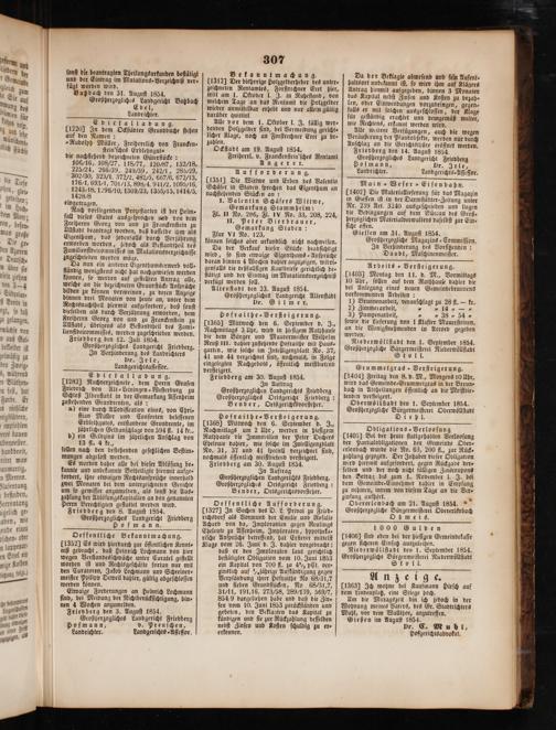 Friedberg am 30. Auguſt 1854. In Auftrag Großherzoglichen Landgerichts Friedberg. Großherzogliches Ortsgericht Friedberg: Bender, Ortsgerichtsvorſteher.