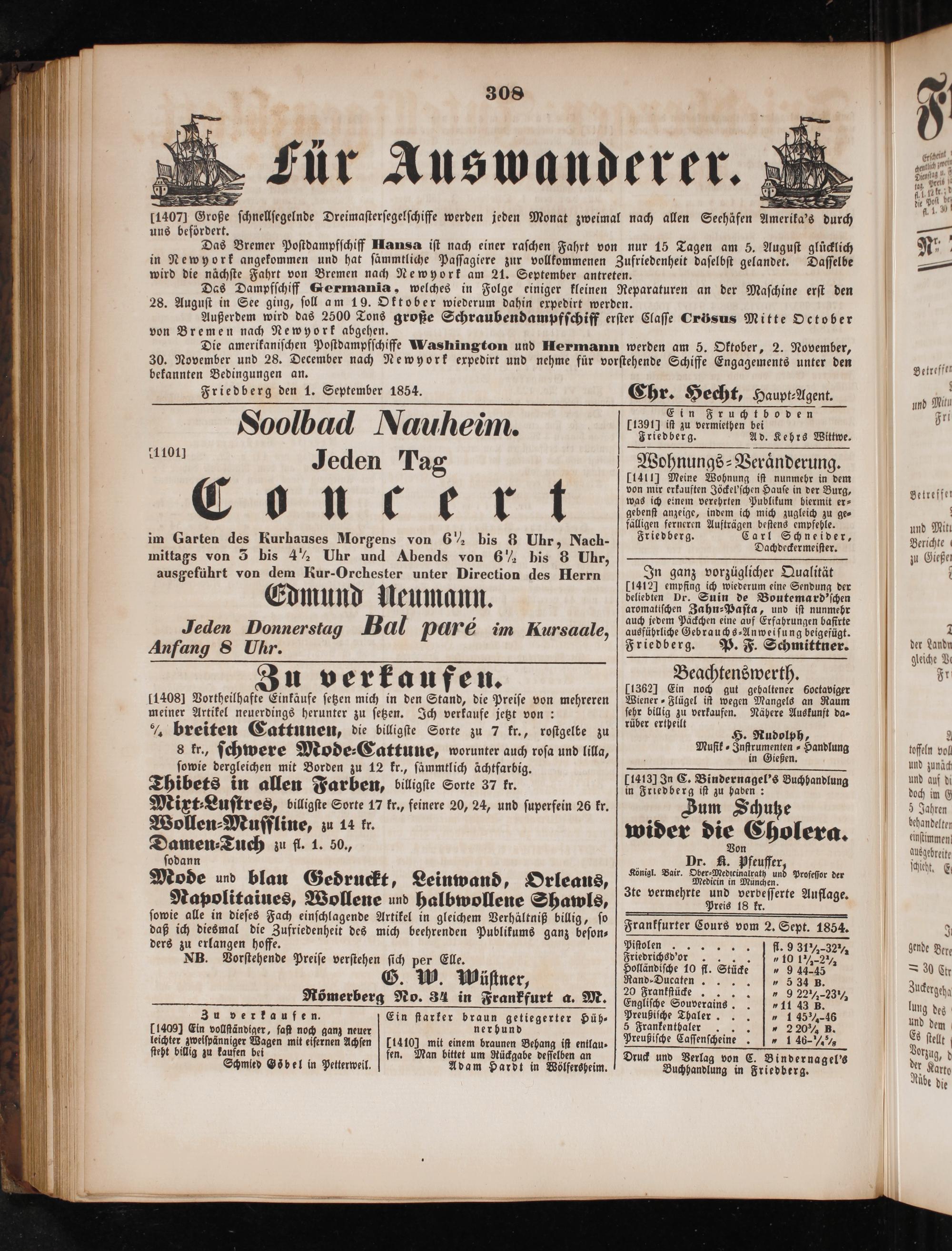 bekannten Bedingungen an. Friedberg den 1. September 1854.