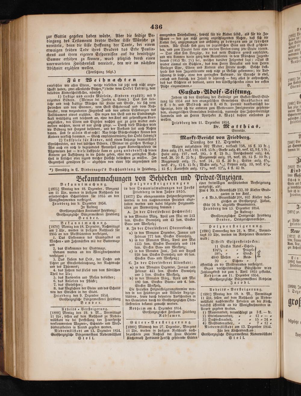 Friedberg den 11. Dezember 1854. l Dr. Matthias,