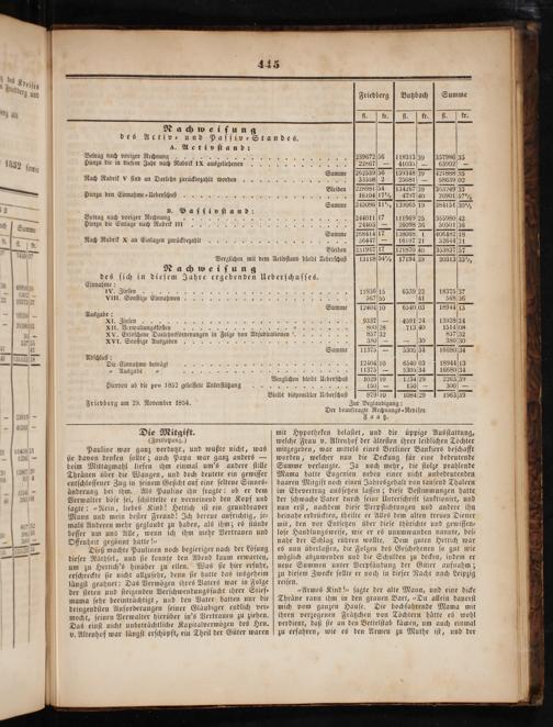 fl. kr. 1 kk. ff. 1 45 Nachweiſung des Activ⸗ und Paſſiv⸗ Standes. A. Activſt and: Betrag nach voriger Rechnung H„%% 96 611831339 357985 Hierzu die in dieſem Jahr nach Rubrik IX ausgeliehenen 313„ 22867— 41035— 63002— 8 Summe 26253956 159348039(421888 35 Nach Rubrik v find an Darlehn zurückbezahlt worden... J. 3⁵⁵8⁰ 2 25081— 358639 02 Bleiben 2289814[134267 0 353240 5