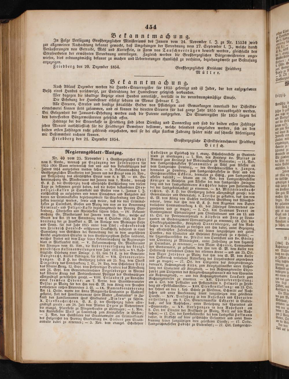 Friedberg den 21. Dezember 1854. Großherzogliche. Friedberg Bit ſch. Regierungsblatt⸗ Auszug. Caſtelhun zu Egelsbach die 1. evang. Schullehrerſtelle zu Gunters⸗