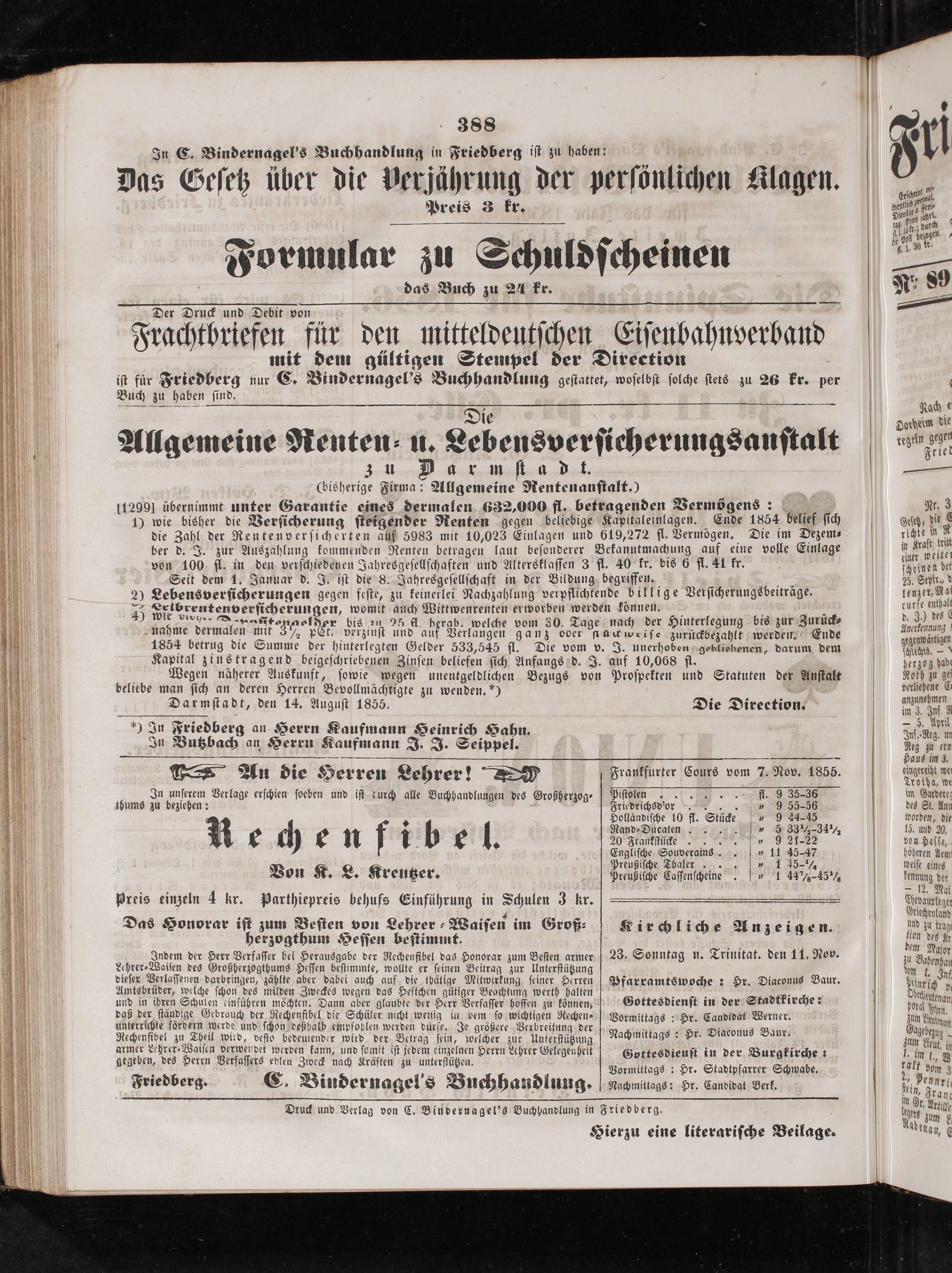 Druck und Verlag von C. Bindernagel's Buchhandlung in Friedberg. Hierzu eine literariſche Beilage.