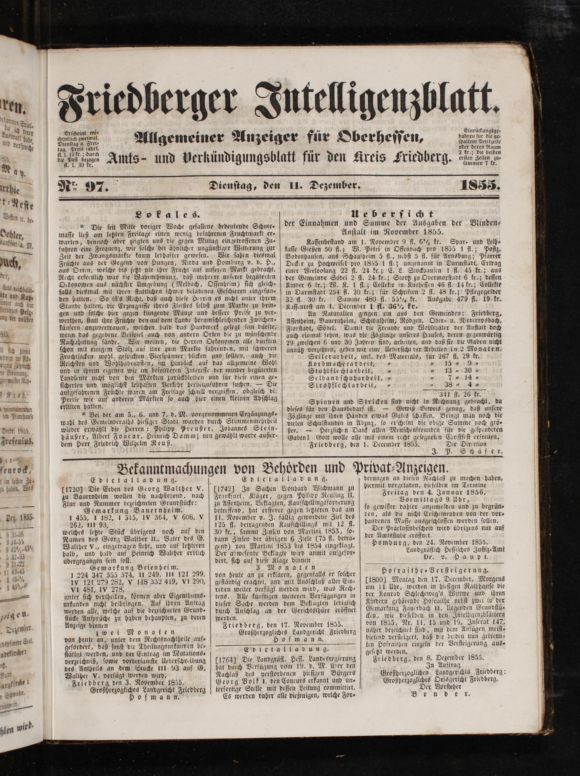 Friedberg, den 1. December 1855. Die Direction