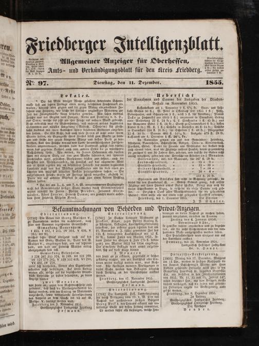 , Friedberger Jutelligenzblatt.