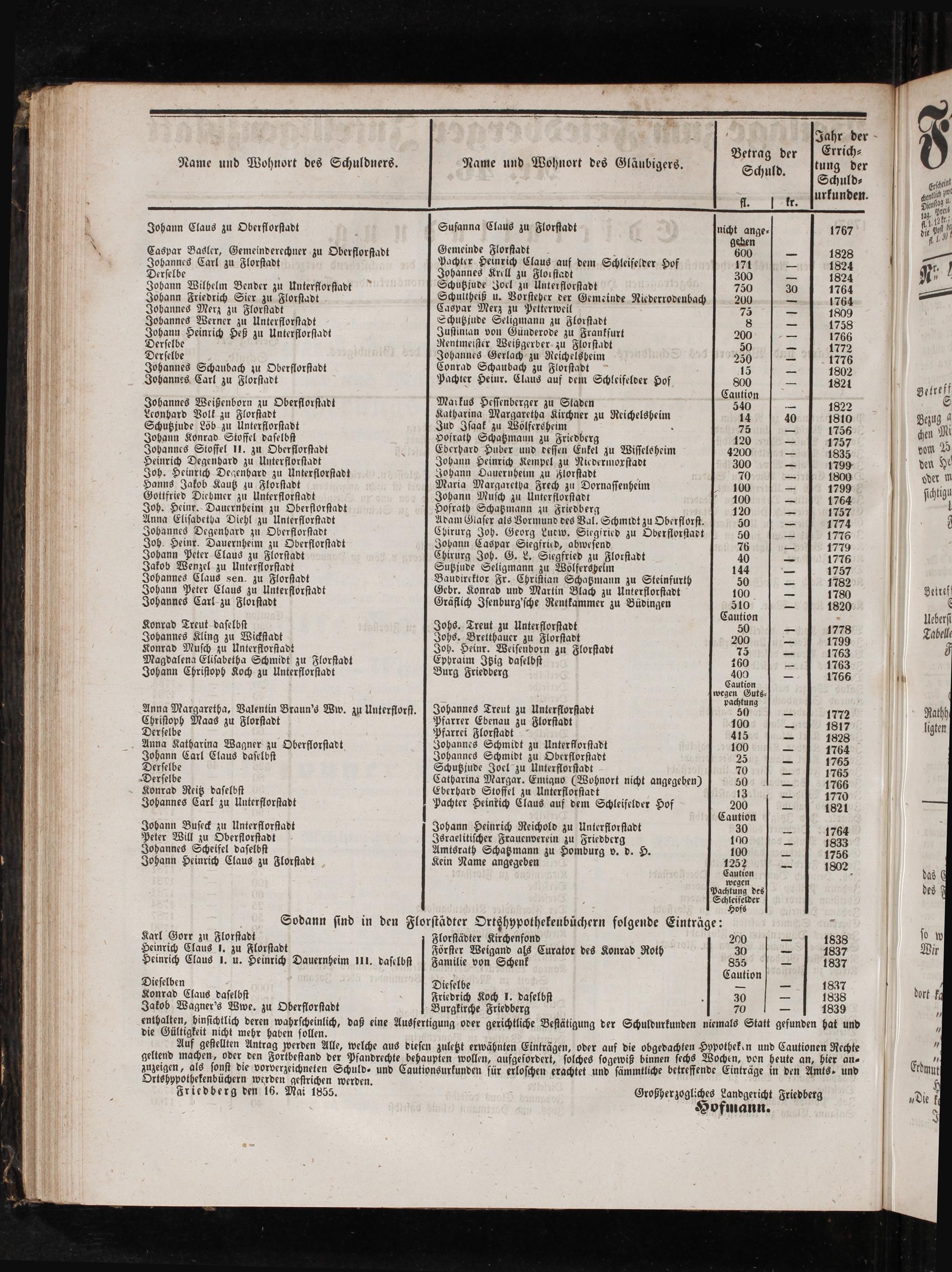 Ortshypothekenbüchern werden geſtrichen werden. Friedberg den 16. Mai 1855.