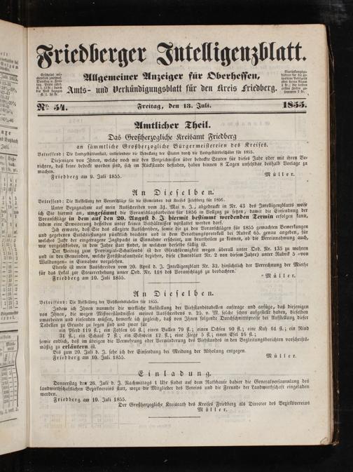 machen. 5 Friedberg am 9. Juli 1855. Müller.