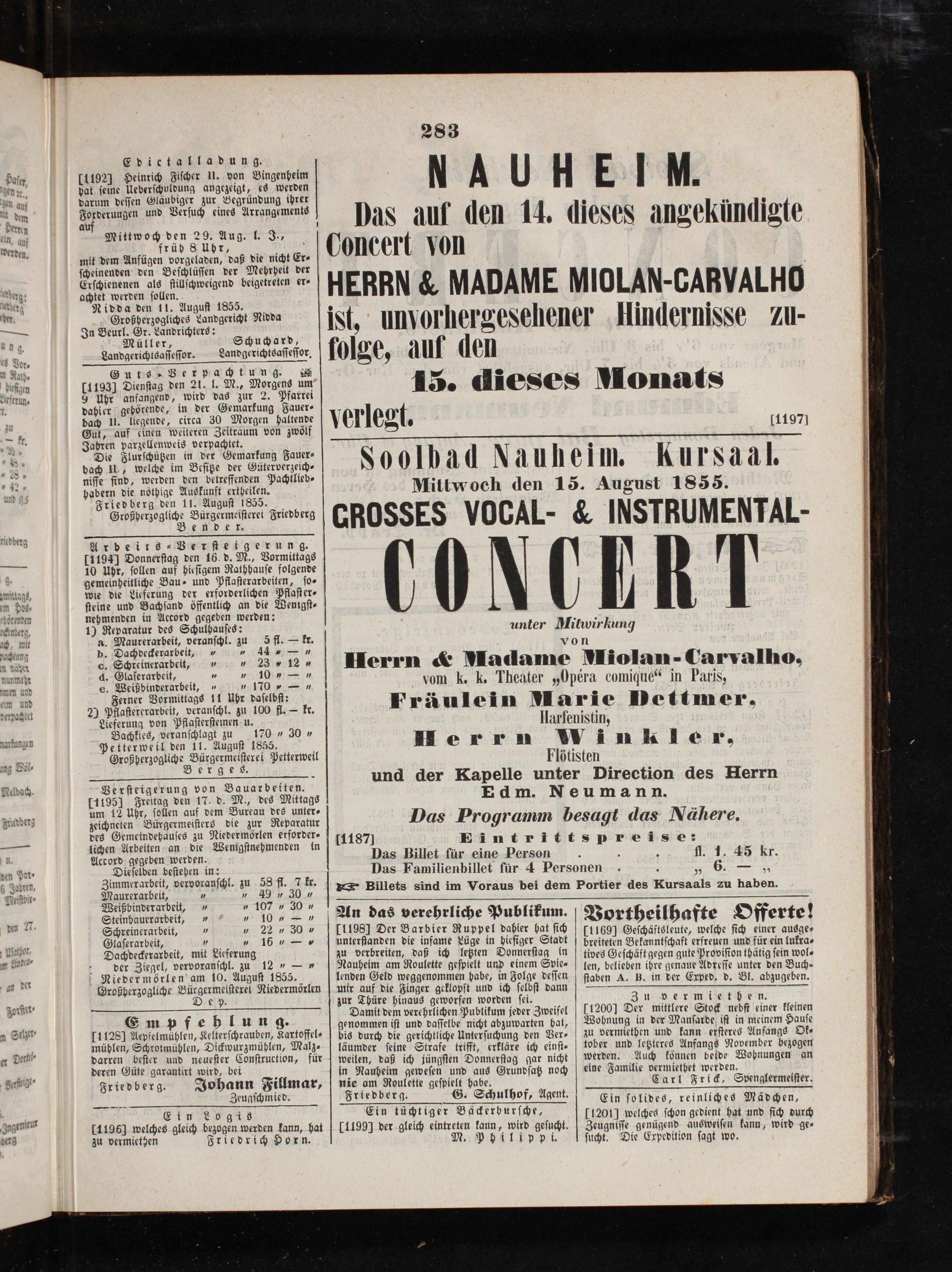 SoOoIbad Nauheim. Mittwoch den 15. August 1855.