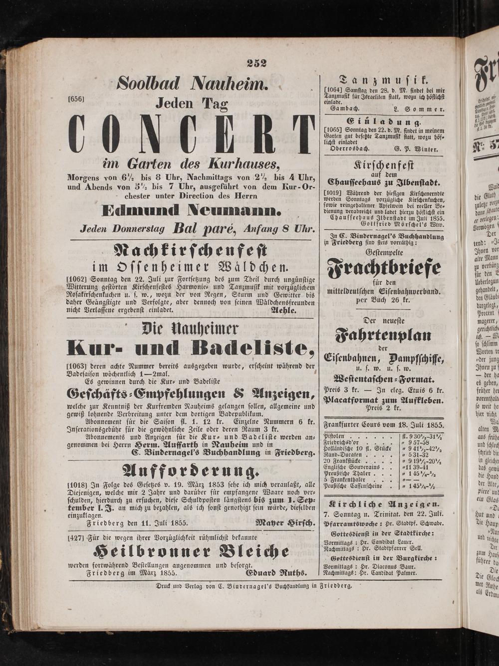 Frankfurter Cours vom 18. Juli 1855.
