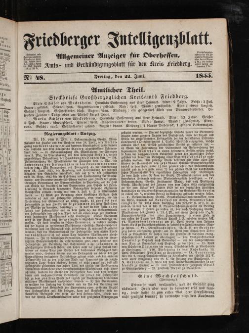 Amtlicher Theil. Steckbriefe Großherzoglichen Kreisamts Friedberg.