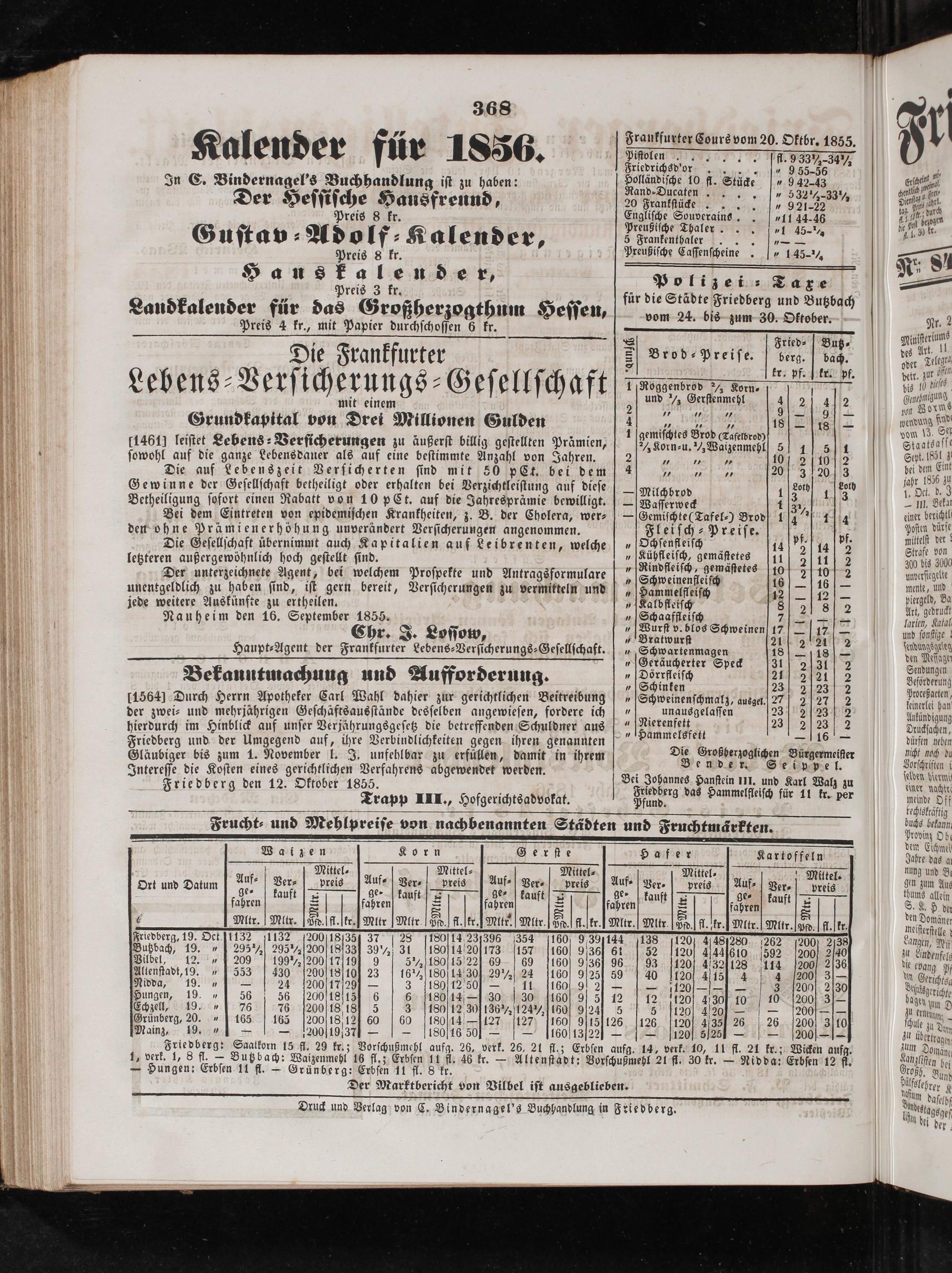 Druck und Verlag von C. Bindernagel's Buchhandlung in Friedberg.