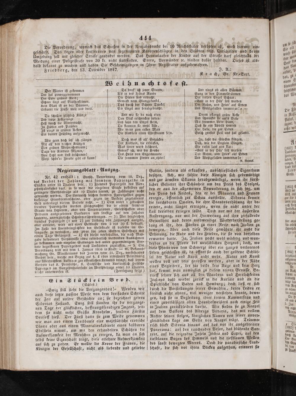 Die Verordnung, wonach das Schießen in der Neujahrsnacht bei 10 Reichsthaler verboten iſt, wird hiermit ein⸗ geſchärft. Das Legen oder Losbrennen von ſogenaunten Kanonenſchlägen in den Städten reſp. Ortſchaften und de ren