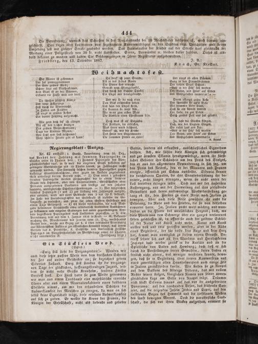Da denk' ich jener Stunde, Als in des Feldes Runde Die Hirten ſind erwacht. Geweckt vom Glanzgefunkel, Das durch der Bäume Dunkel Ein Engel mir herabgebracht.