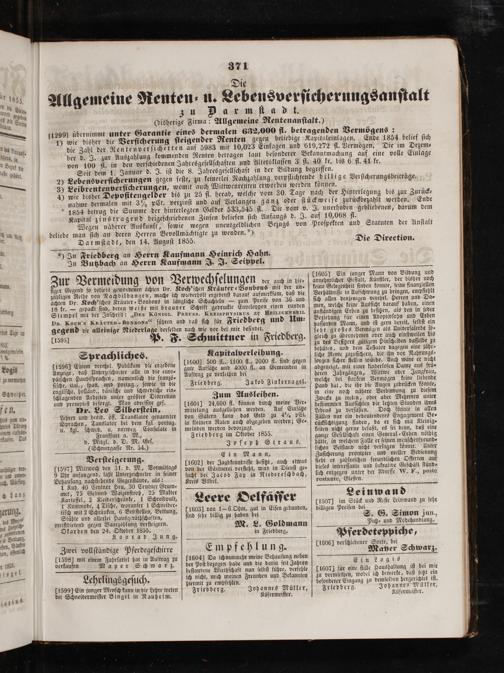 beliebe man ſich an deren Herren Bevollmächtigte zu wenden.) Darmſtadt, den 14. Auguſt 1855.