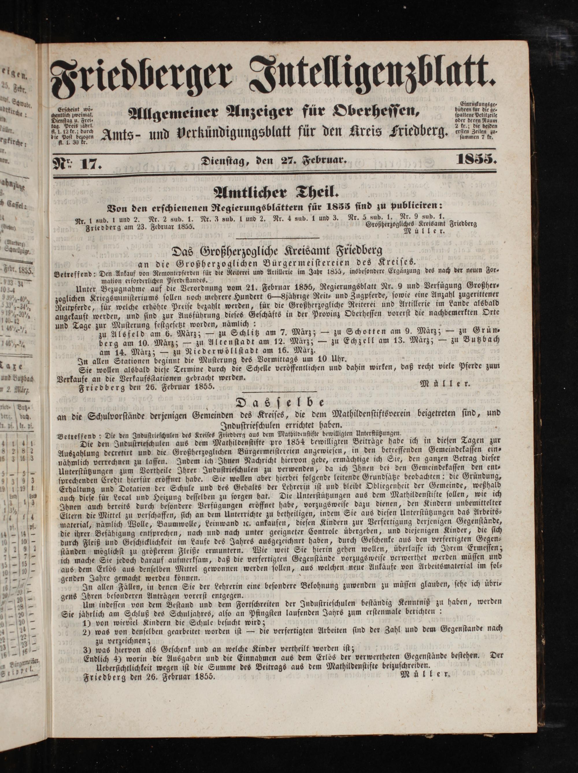Friedberg den 26. Februar 1855. Müller.