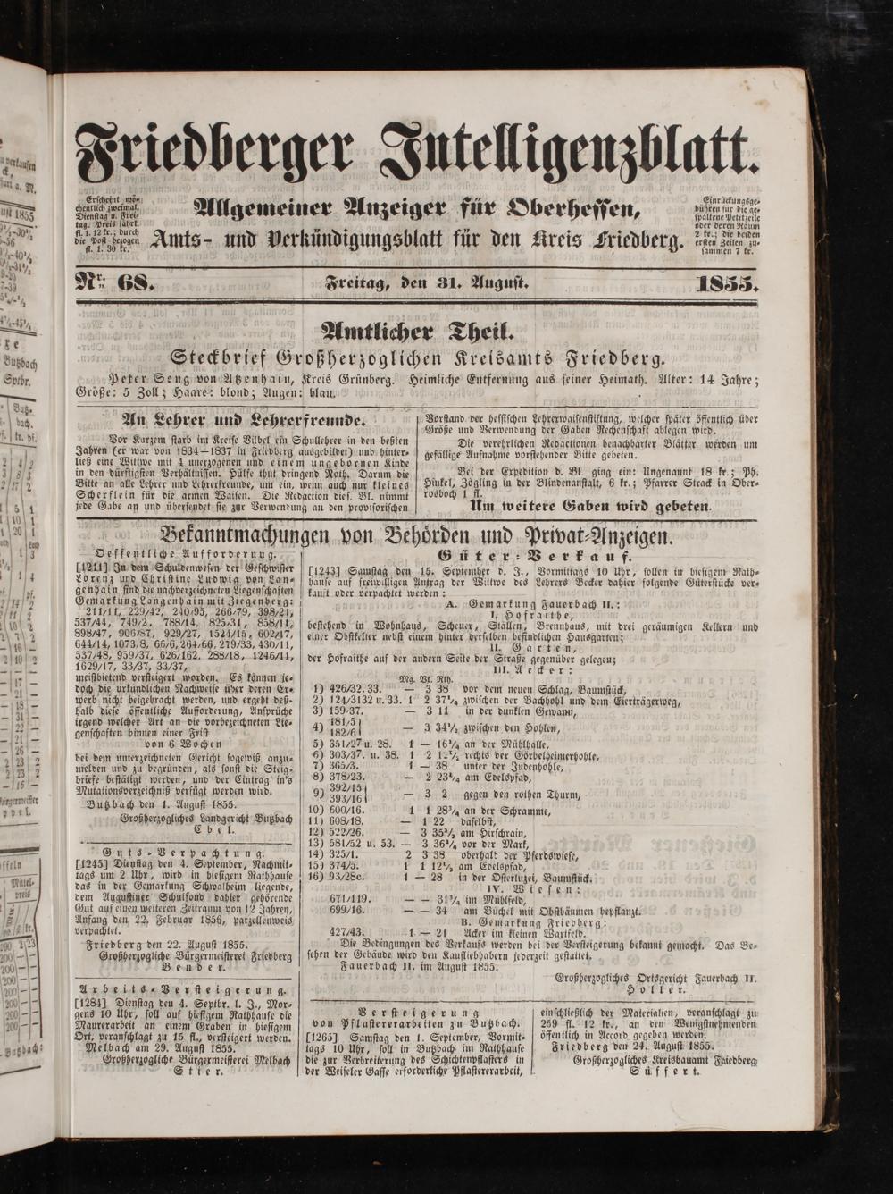 Amtlicher Theil. Steckbrief Großherzoglichen Kreisamts Friedberg.