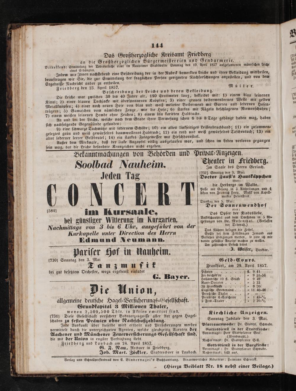 Ergebniſſe Nachricht anher zu ertheilen. Friedberg den 23. April 1857.