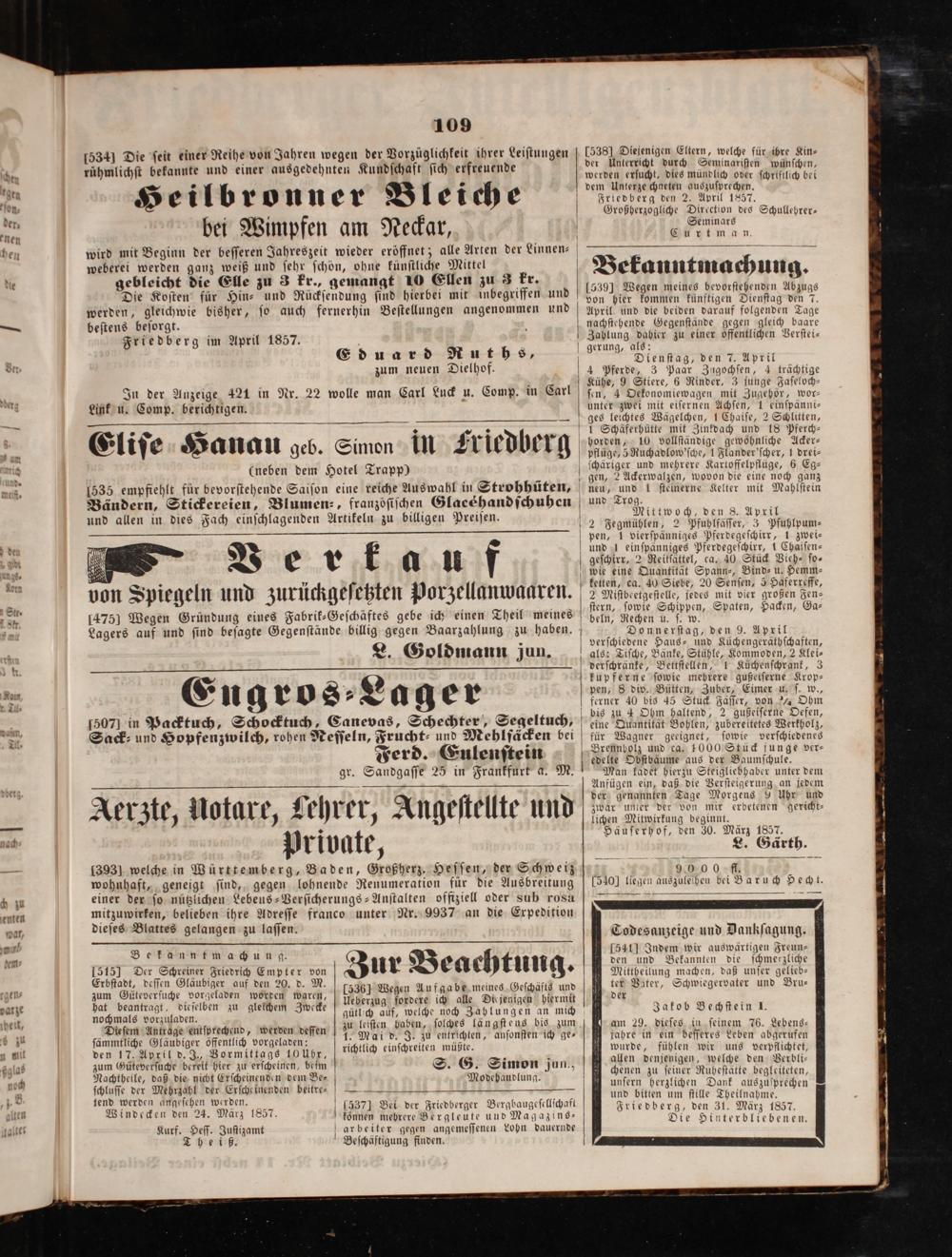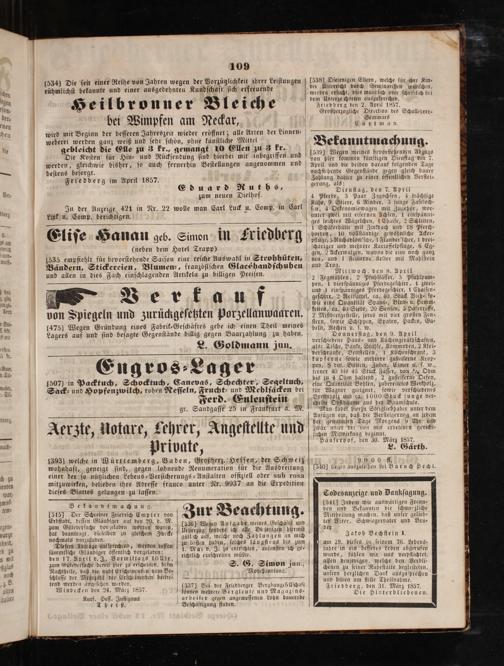 Jun der Anzeige 421 in Nr. 22 wolle man Carl Luck u. Comp. in Carl Link u. Comp. berichtigen.