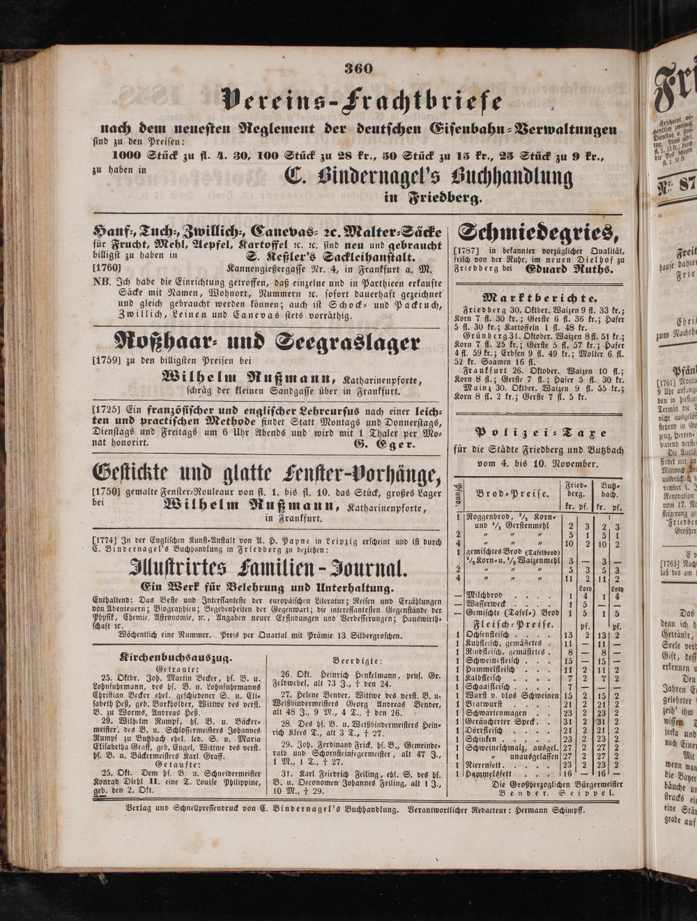 Bindernagel's Buchhandlung. Verantwortlicher Redacteur: Hermann Schimpff.