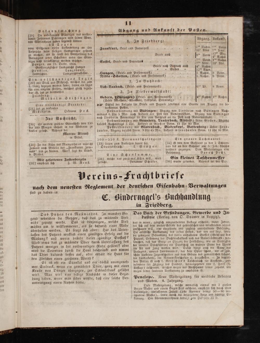 Bekanntmachung. Abgang und Ankunft der Poſten. 29] Die unbekannten Gläubiger des verſtor⸗[e—————— 5 benen Johannes Doͤringer und ſeiner Wwe. ö 7 von Wolfersheim haben ſogewiß binnen 1. In Friedberg: Abgang. Ankunft. 14 Tagen