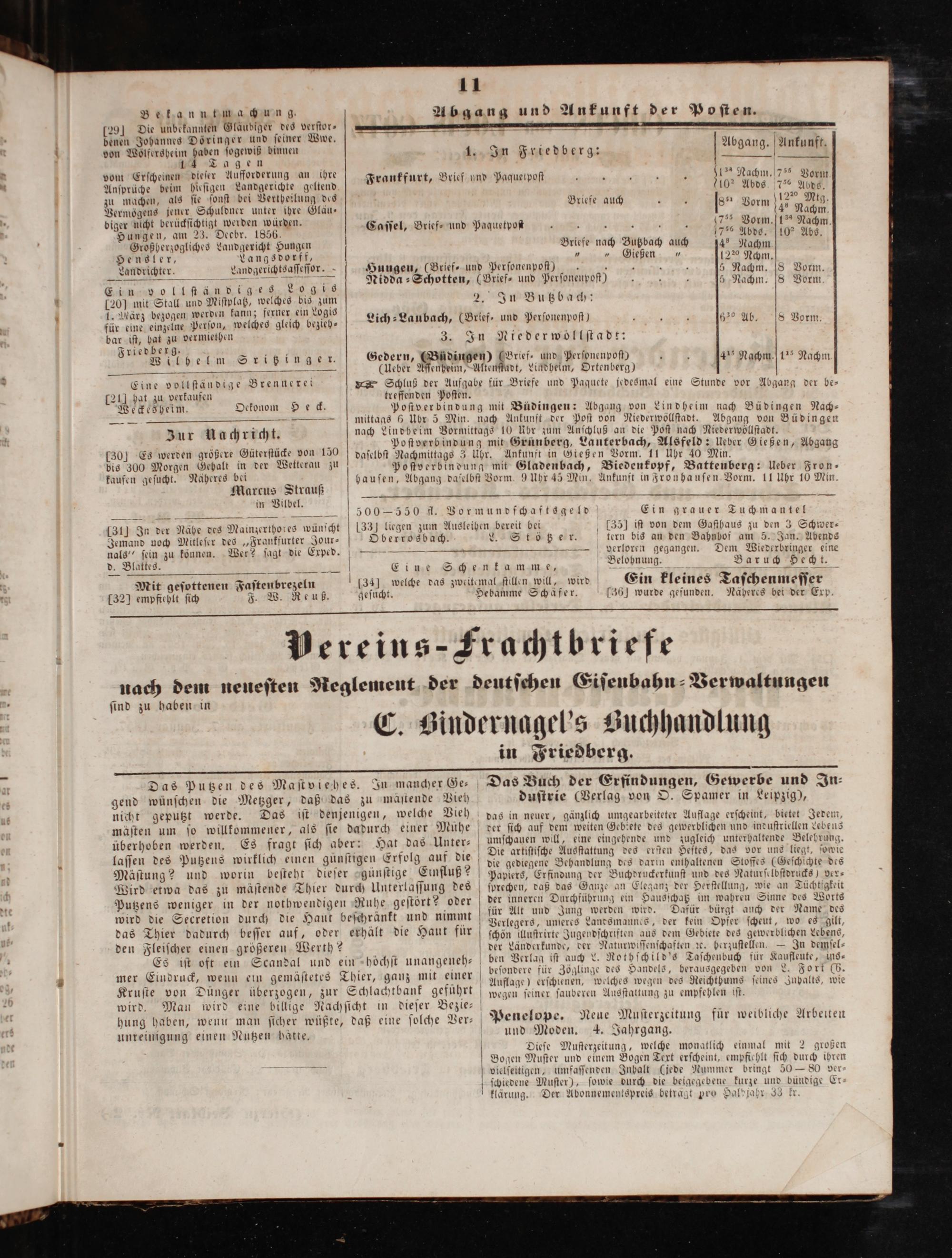 Hungen, am 23. Deebr. 1856. Caſſel, f peaüst ve A f. 75̊ Abds.(0e Abs.