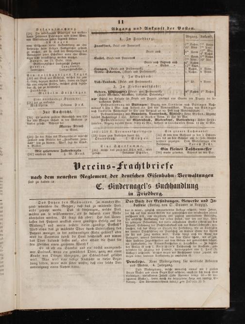 Poſtverbindung mit Gladenbach, Biedenkopf, Battenberg: Ueber Fron— hauſen, Abgang daſelbſt Vorm. 9 Uhr 45 Min, Ankunft in Fronhauſen Vorm. 11 Uhr 10 Min.