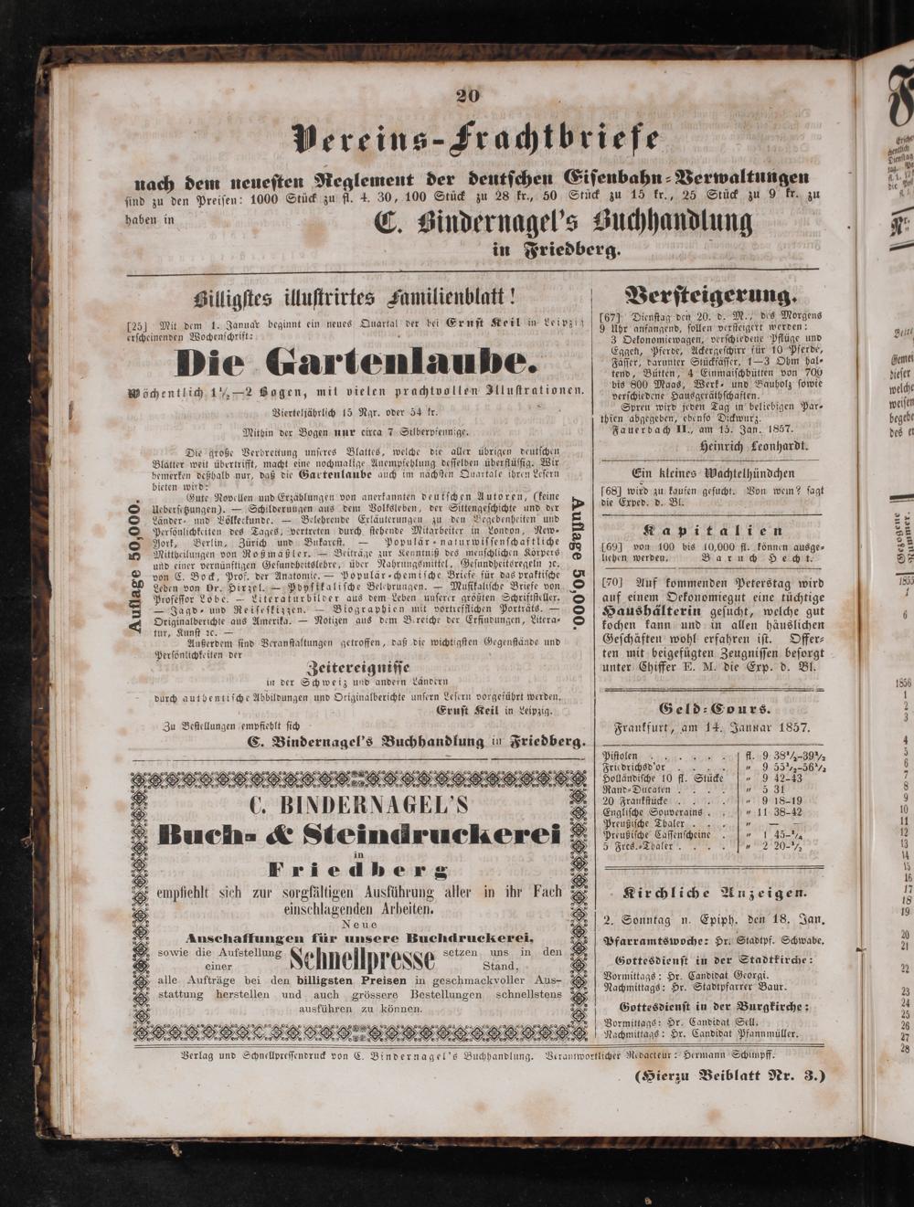 [25] Mit dem 1. Januar beginnt ein neues Quartal der bei Eruſt Keil in Leipzig erſcheinenden Wochenſchrift: 1