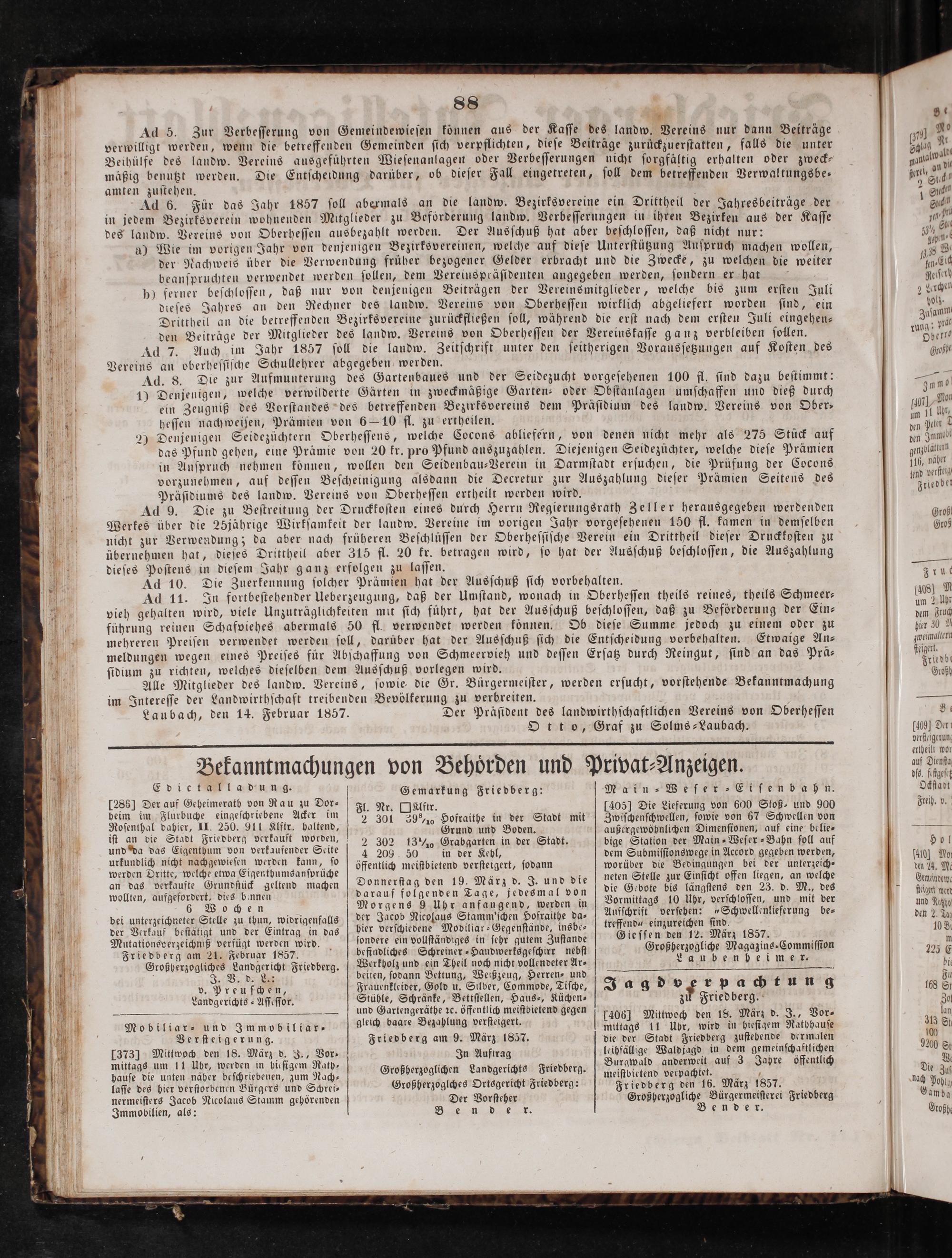 Friedberg am 9. März 1857. In Auftrag Großherzoglichen Landgerichts Friedberg. Großherzoglches Ortsgericht Friedberg: