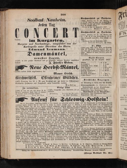 Friedberg den 20. Auguſt 1857. Hofmann, Landrichter. J. Falck. K. Baur. J. Pfeffer. F. Roßbach. J. P. Schäfer, Director der Blinden⸗Anſtalt E. Seeger, cand. theol. C. D. Groß. J. Steinhäußer. G. Schmidt. Cbr. Hecht. Meper Hir ſch. J. Müller. G. Trapp II. C. Wabl. Walz. J. Wahl. Schweitzer. F. W. Reuß. Wieſſell. C. Heidt.