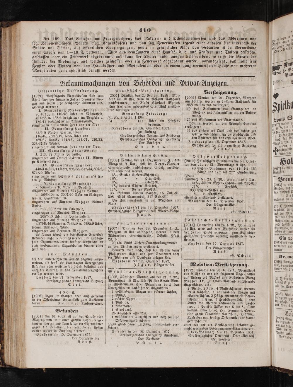 der Wetterau und Homburg gelegen find. N Wehrheim den 12. Dezember 1857. Jäger, Bürgermeiſter.