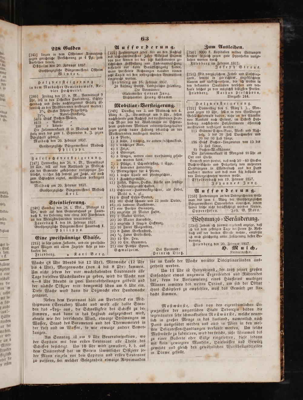 dienung. Friedberg den 20. Jebruar 1857. H. Mulch,
