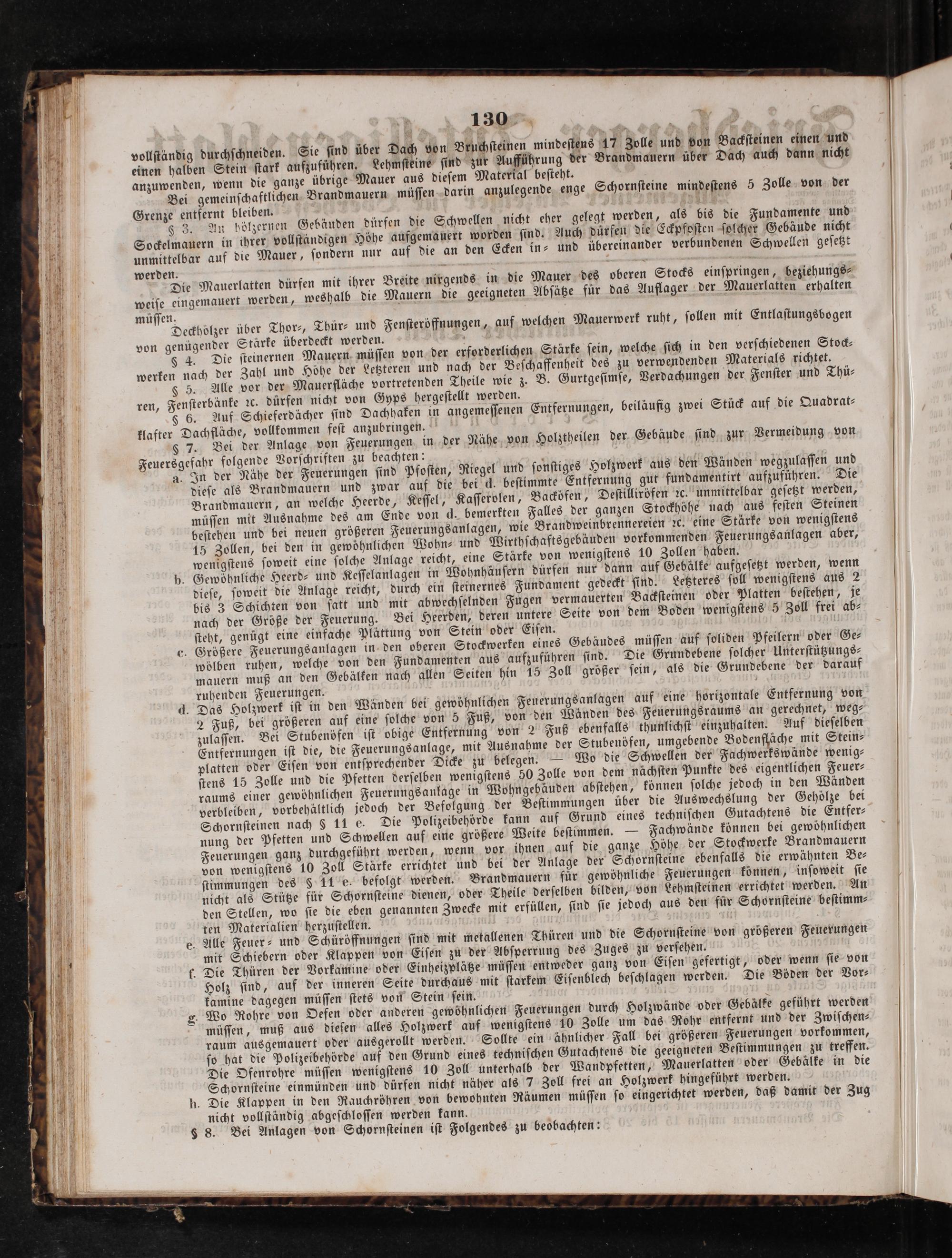 t. Die Thüren der Vorkamine oder Einheizplätze müſſen entweder ganz von Eiſen gefertigt, oder wenn ſie von Holz ſind, auf der inneren Seite durchaus mit ſtarkem Eiſenblech beſchlagen werden. Die Böden der Vor⸗ kamine dagegen müſſen ſtets von Stein ſein. 1